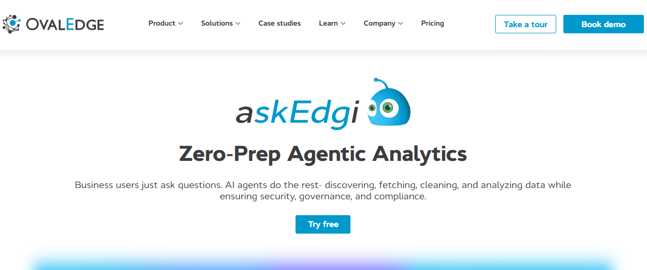 askEdgi is a self-service analytics solution that helps business teams ask questions in simple English. The platform connects to trusted data in the OvalEdge catalogue and returns clear visual answers in seconds. Data preparation and standardization happen automatically, which reduces setup time and supports fast adoption. AI capabilities help convert everyday business questions into consistent and reliable insights.